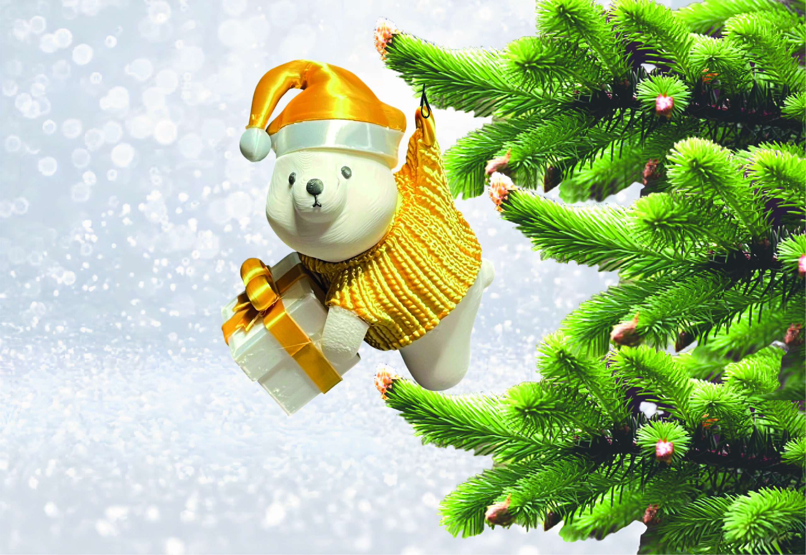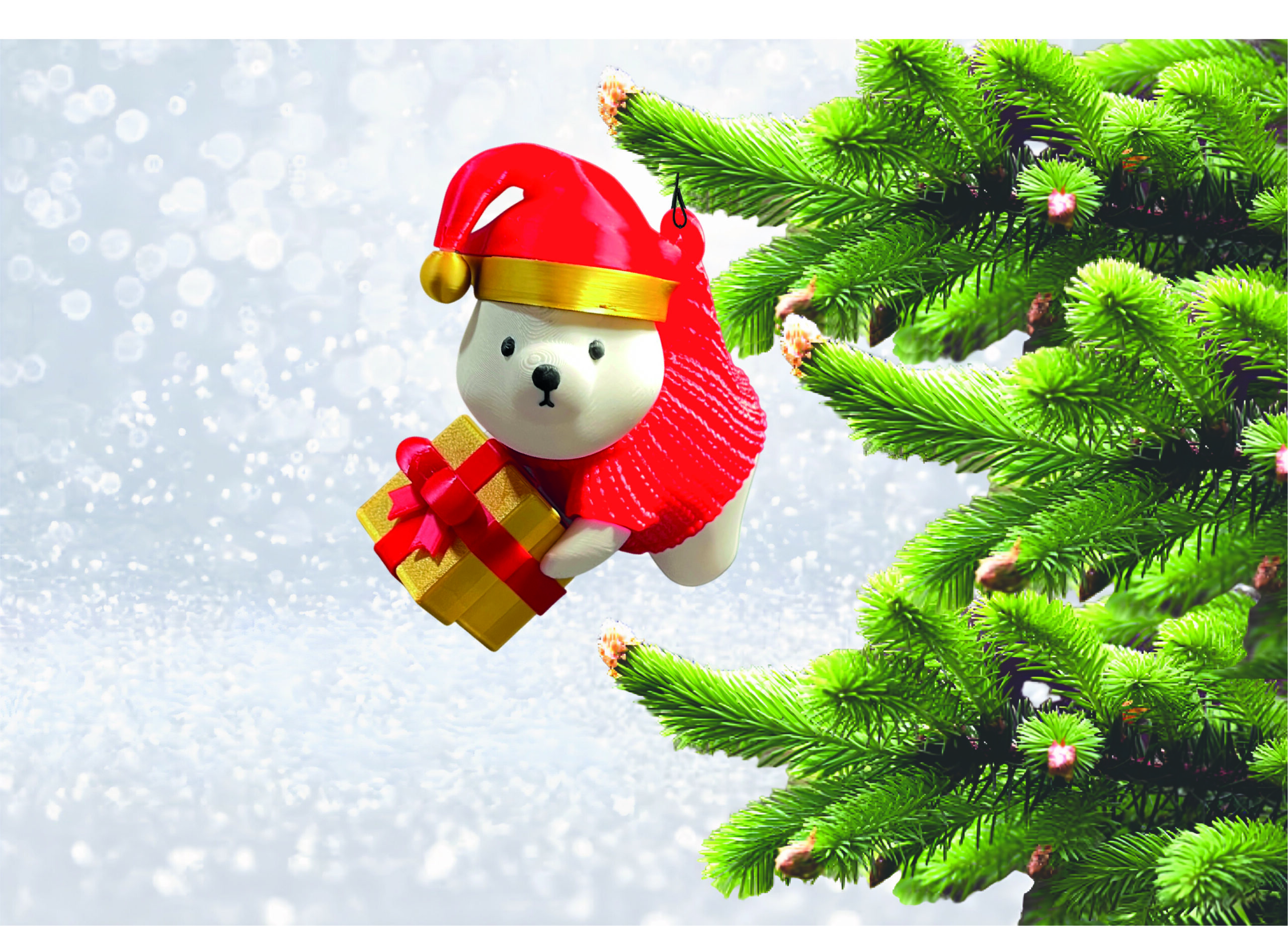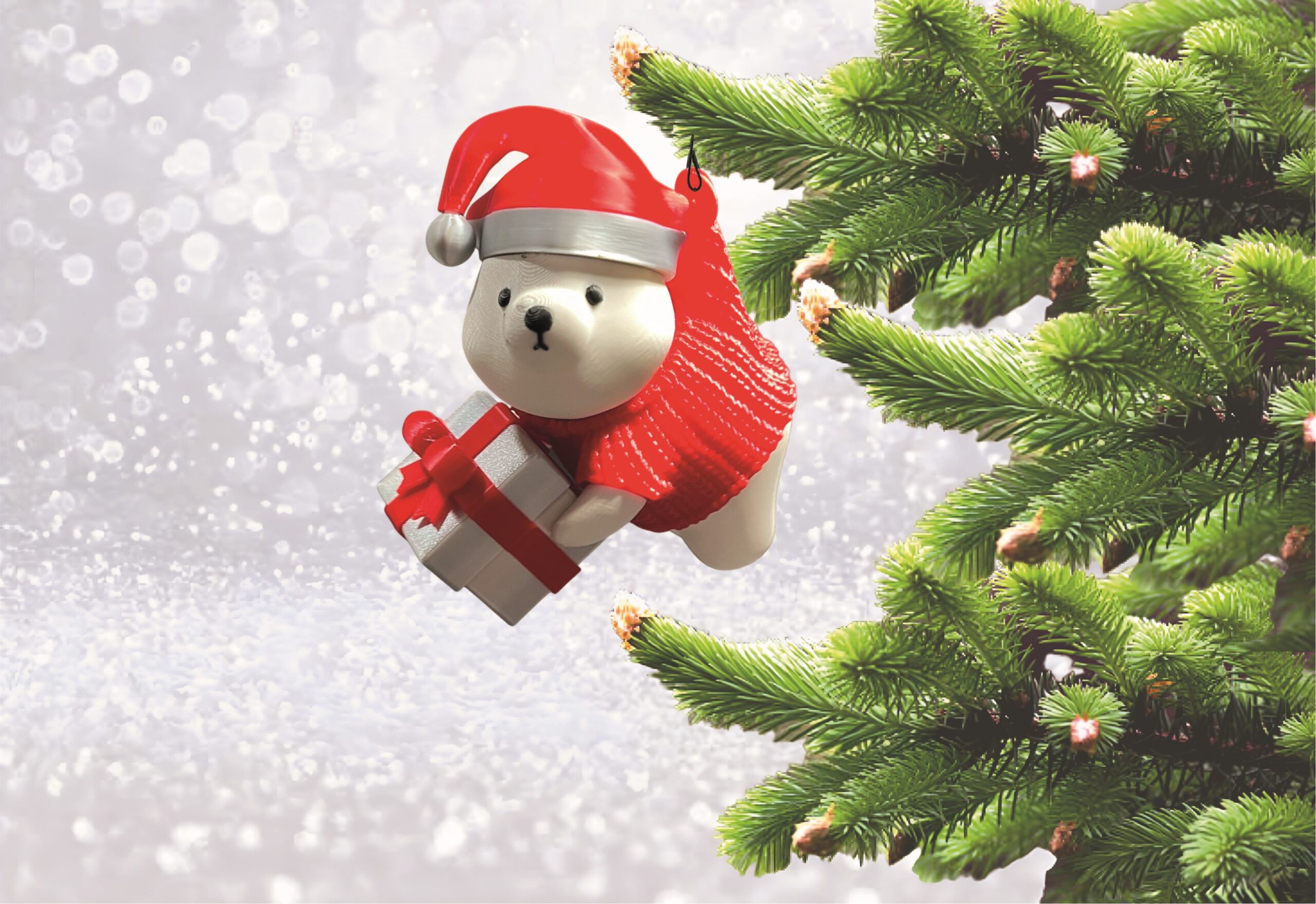 Početna>Božićni pokloni i dekoracije>Ukrasi i dekoracije za bor i vrata>UKRAS ZA BOR – VISEĆI MEDO SA POKLONOM