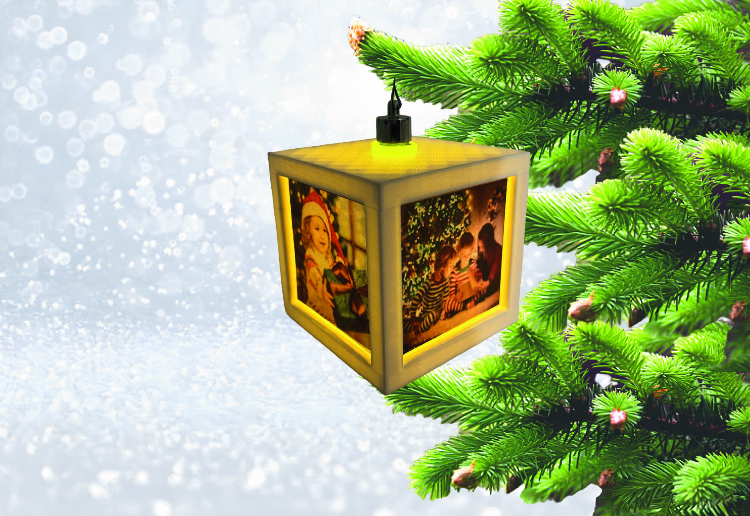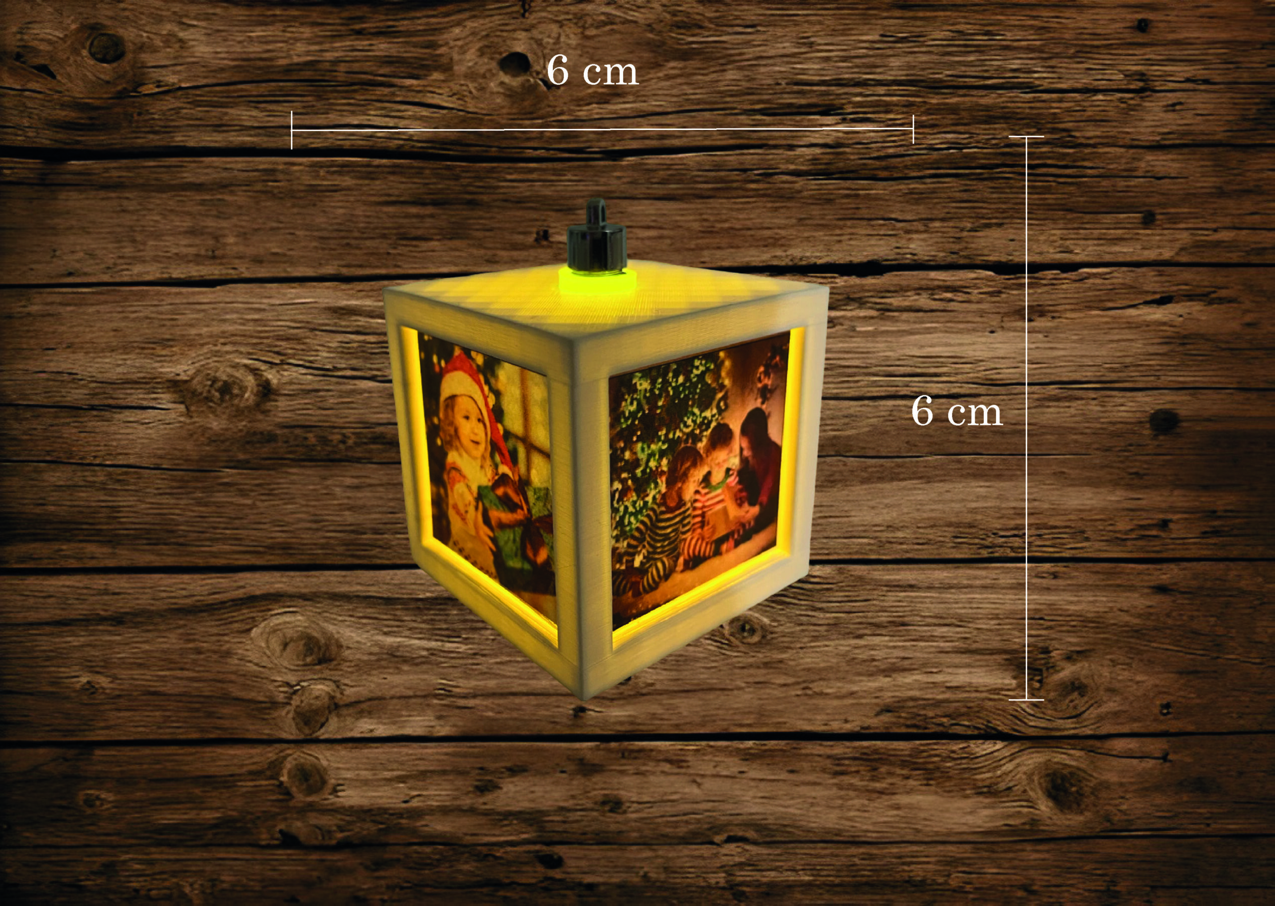 Početna>Božićni pokloni i dekoracije>Personalizirane kuglice i ukrasi za bor>PERSONALIZIRANI UKRAS ZA BOR – VISEĆA SVIJETLEĆA KOCKA SA SLIKAMA